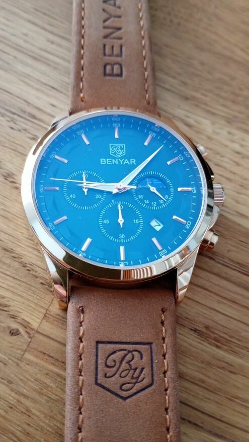 Sprzedam zegarek męski BENYAR,stan bardzo dobry,po wymianie baterii.Zegarek posiada Japoński mechanizm kwarcowy, skórzany pasek,stan jak nowy.Mariusz